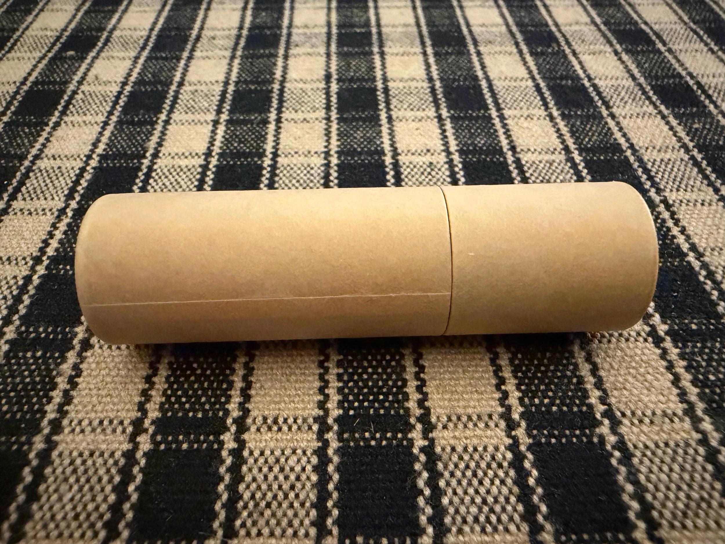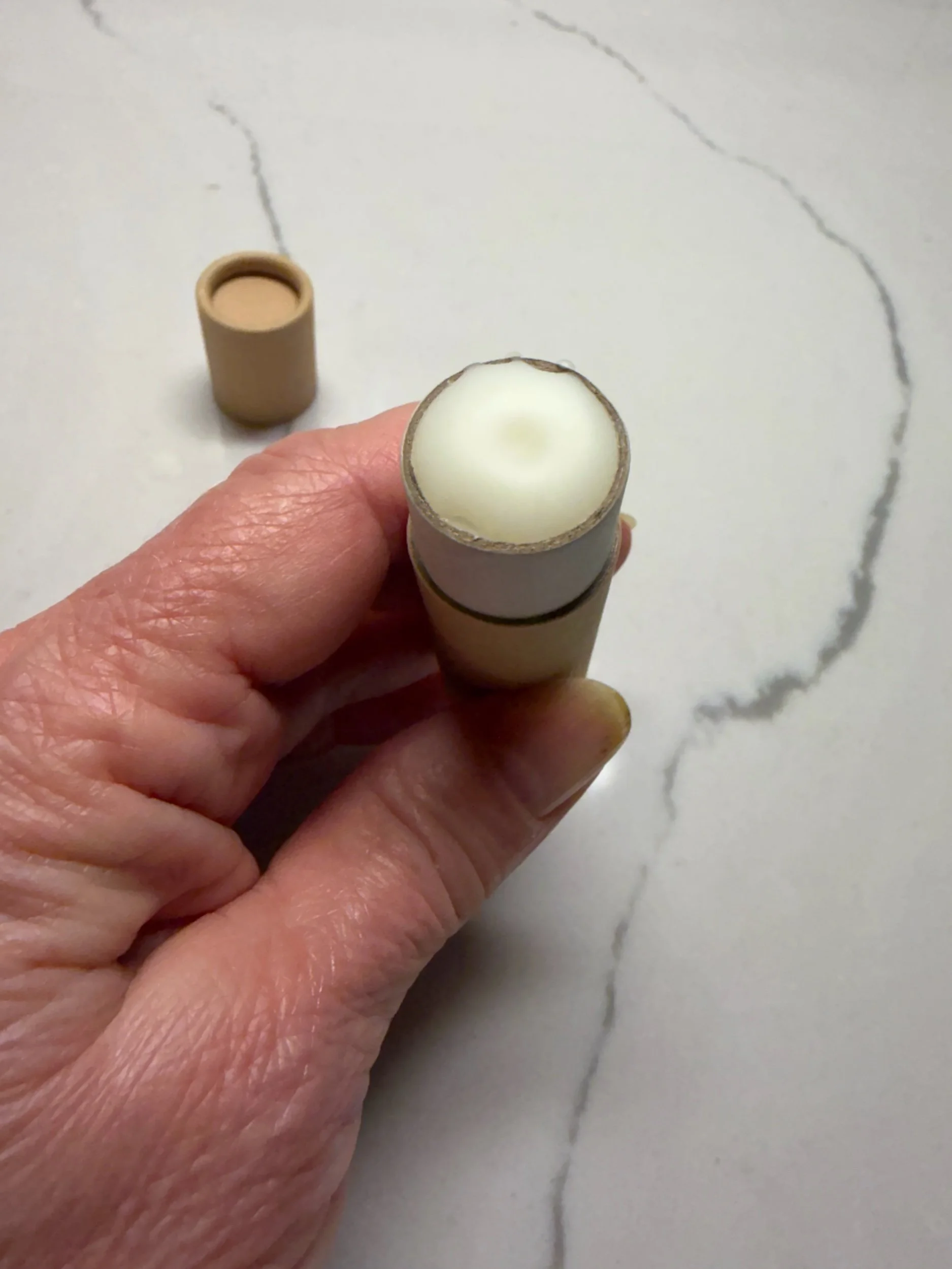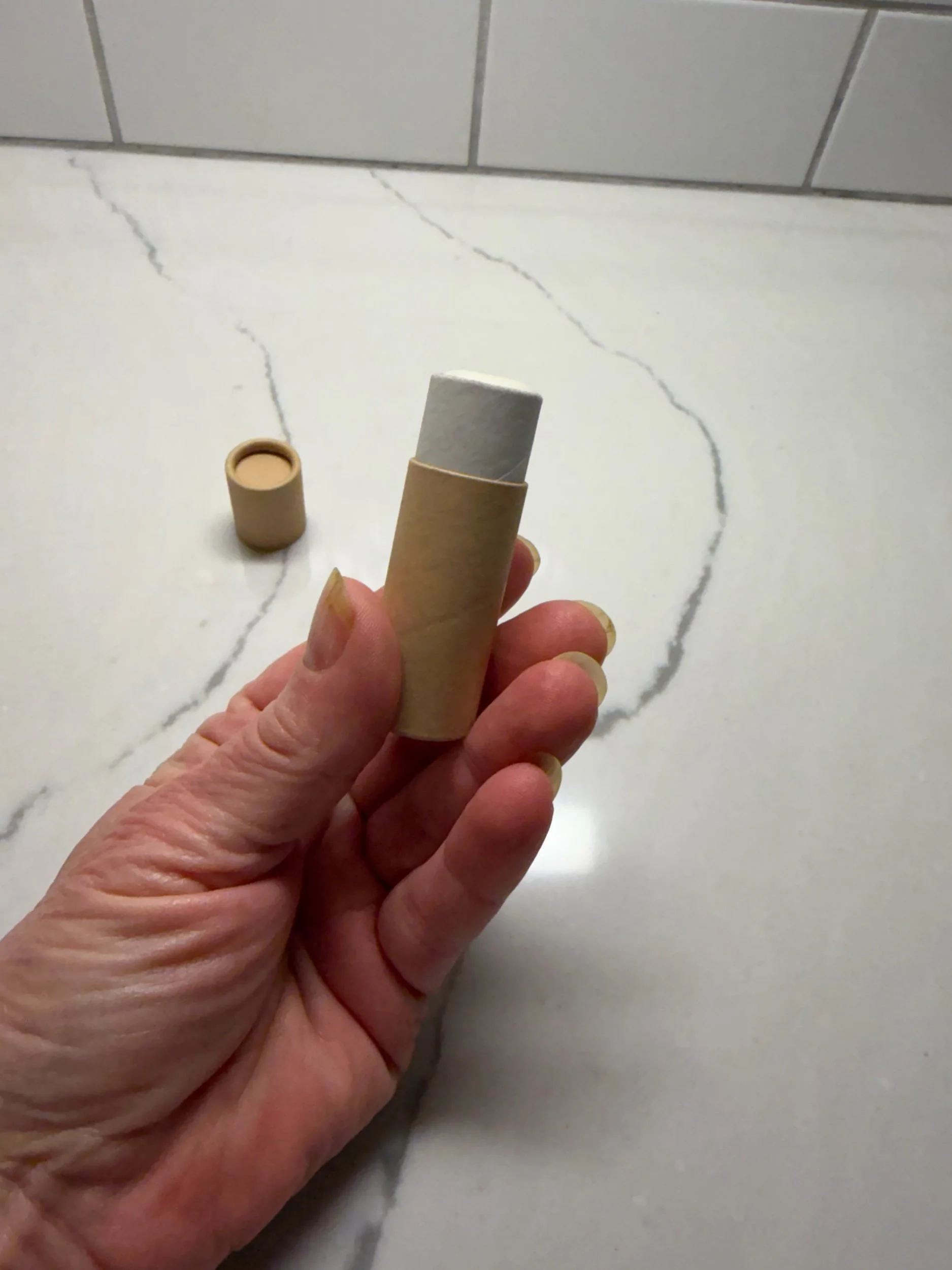 This lip balm is in a paper card board tube that is eco-friendly and not plastic.
